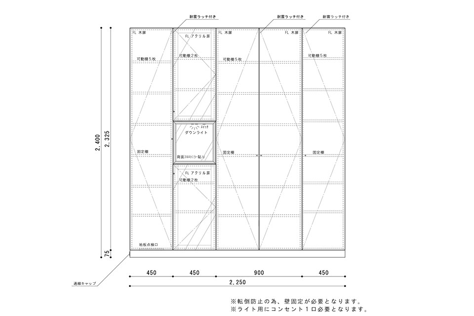 | サイズ | 巾2250 × 奥行446 × 高さ2400 |