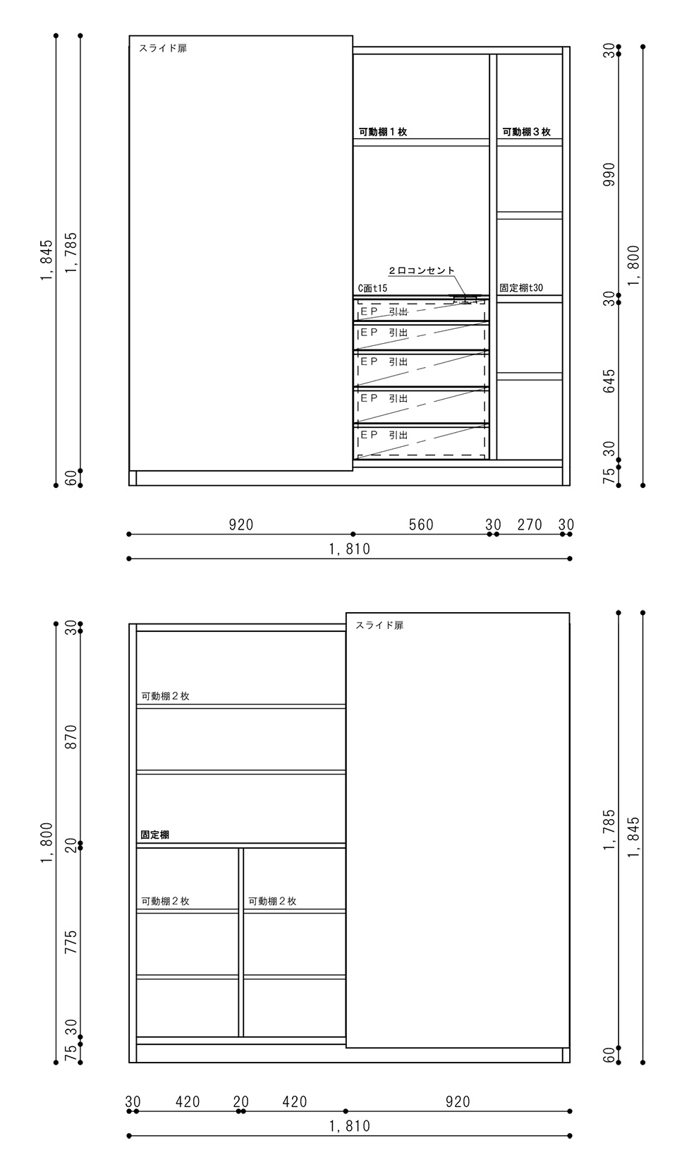 サイズ | 巾1810 × 奥行453 × 高さ1845 |