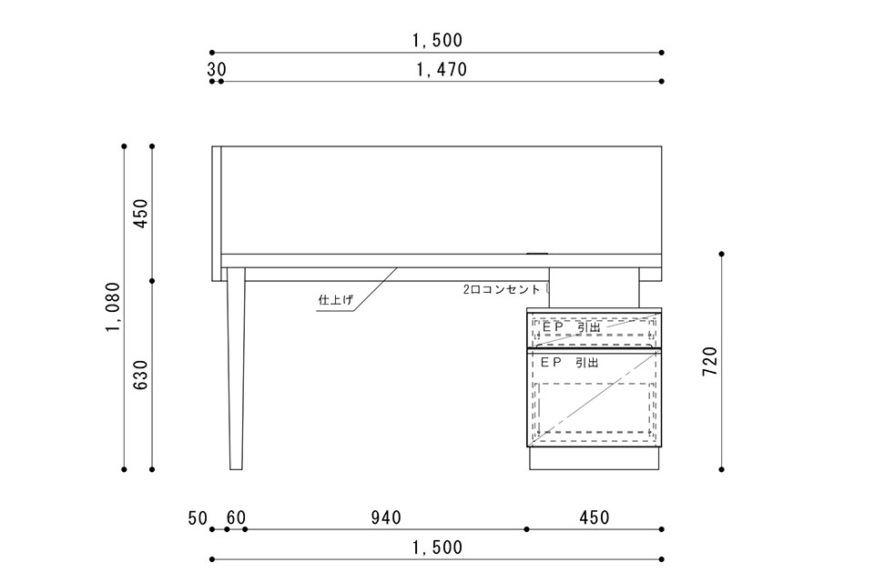 | サイズ | 巾1500 × 奥行570 × 高さ1080 |