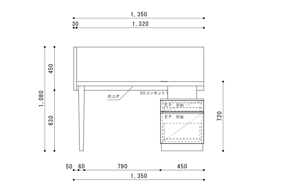 巾1350 × 奥行450 × 高さ720