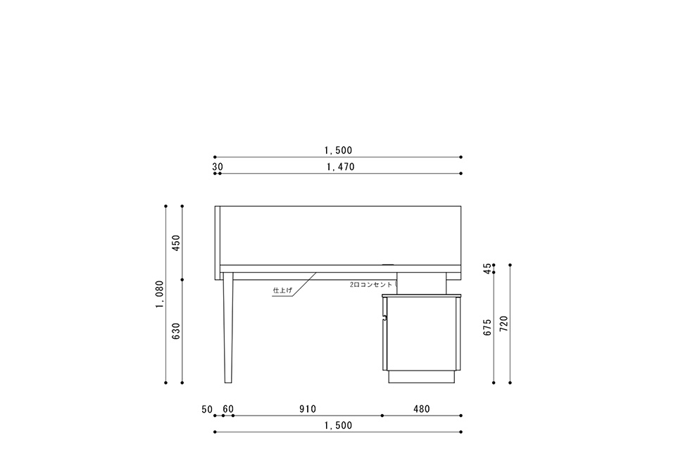 ホームオフィスなどにおすすめしたいデスクタイプのプランです。天板にはもの書きにも程よい弾力性を持つ天然素材のリノリウムを採用するなど、快適で安全な作業環境づくりを追求しました。