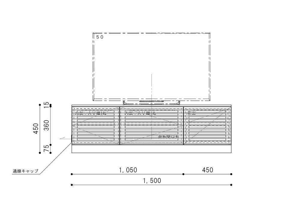 TVボードは、30mmの台輪と15mmの天板で、ミニマルな存在感の組み合わせもご用意。カラー塗装を施した天板と木質感を生かした扉とのコントラストが個性的なプランなど、選択の幅も豊富です。