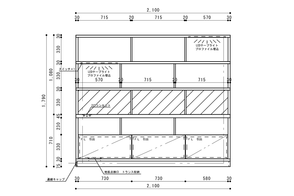 サイズ 巾2100 × 奥行450 × 高さ1790