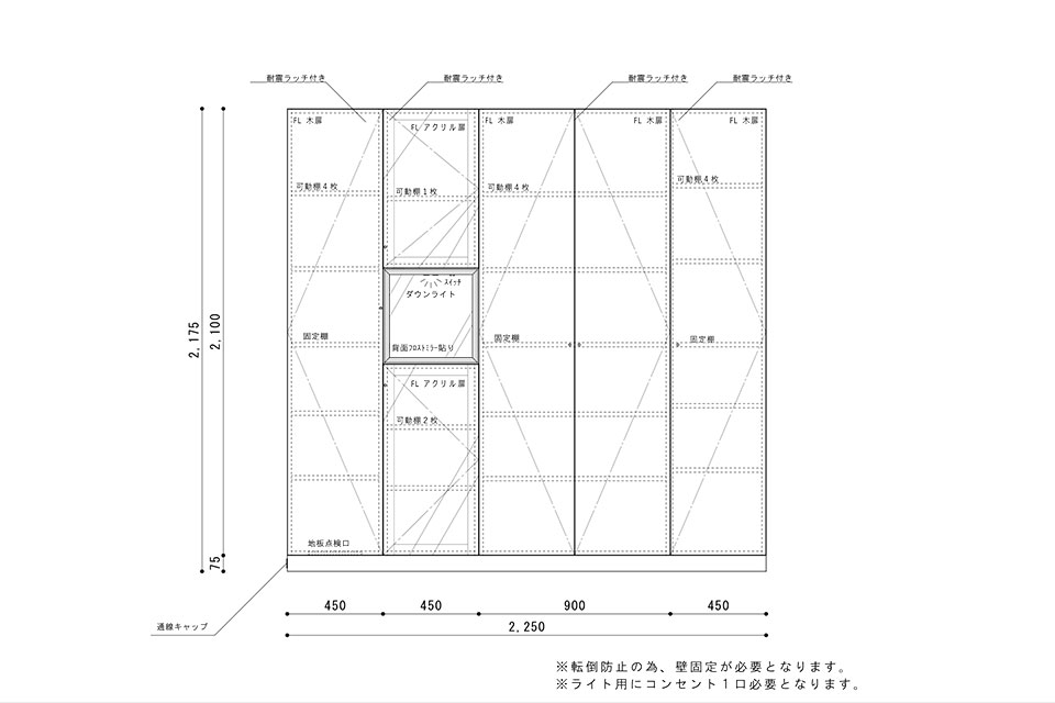 サイズ 巾2250 × 奥行446 × 高さ2175