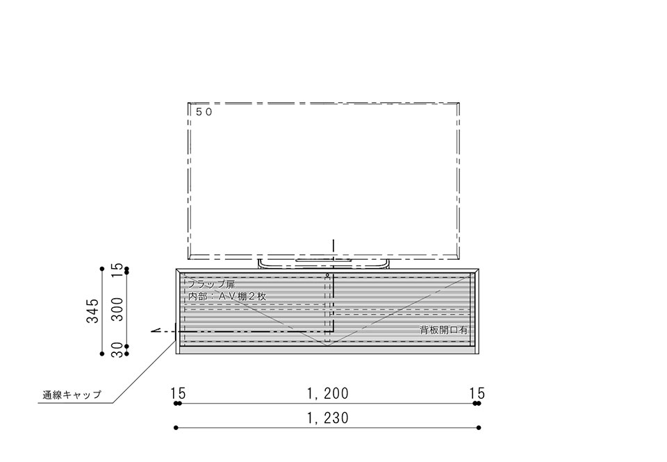 TVボードは、30mmの台輪と15mmの天板で、ミニマルな存在感の組み合わせもご用意。カラー塗装を施した天板と木質感を生かした扉とのコントラストが個性的なプランなど、選択の幅も豊富です。
