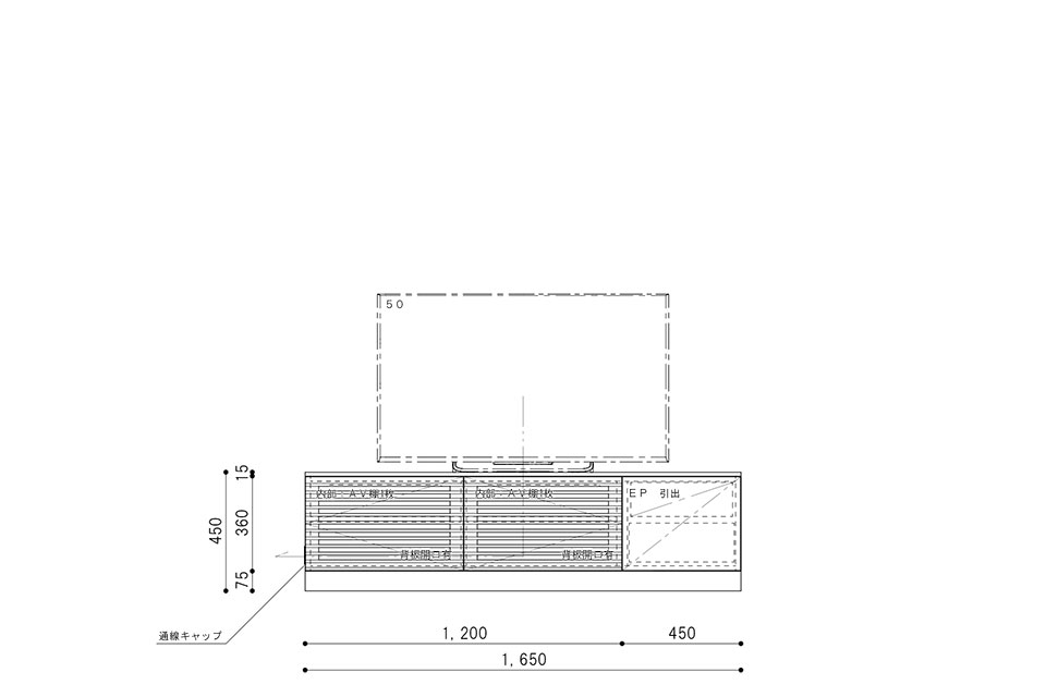 TVボードは、30mmの台輪と15mmの天板で、ミニマルな存在感の組み合わせもご用意。カラー塗装を施した天板と木質感を生かした扉とのコントラストが個性的なプランなど、選択の幅も豊富です。