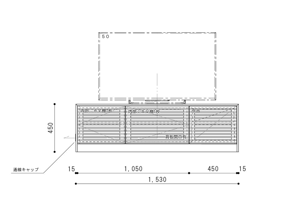 TVボードは、30mmの台輪と15mmの天板で、ミニマルな存在感の組み合わせもご用意。カラー塗装を施した天板と木質感を生かした扉とのコントラストが個性的なプランなど、選択の幅も豊富です。