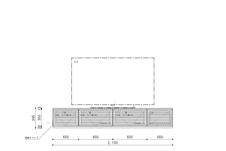 TVボードは、30mmの台輪と15mmの天板で、ミニマルな存在感の組み合わせもご用意。カラー塗装を施した天板と木質感を生かした扉とのコントラストが個性的なプランなど、選択の幅も豊富です。