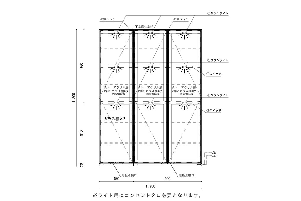 空間の中で存在感を発揮し、高い収納力を持つハイボード。アクリル扉やダウンライトなどにより自慢のコレクションを見せるための収納としても、ワンランク上の空気感を醸成します。