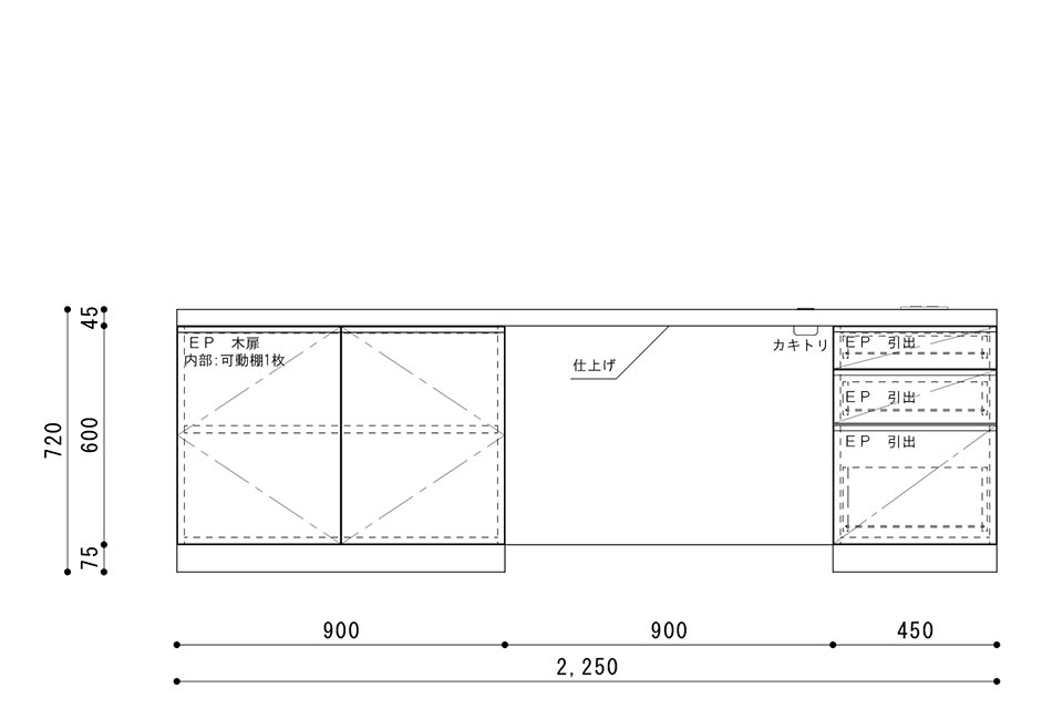 巾2250 × 奥行450 × 高さ720