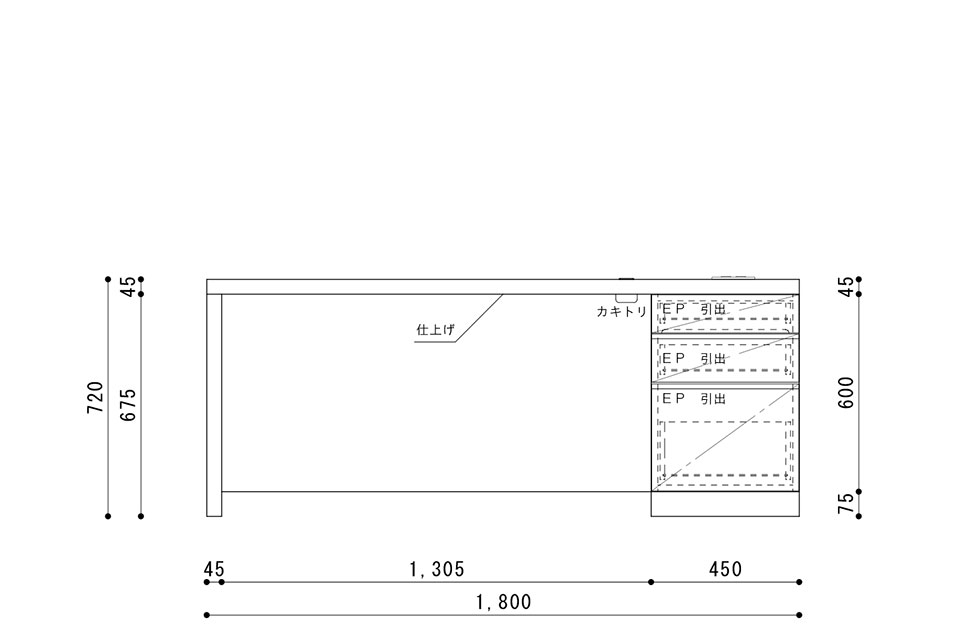 ホームオフィスなどにおすすめしたいデスクタイプのプランです。天板にはもの書きにも程よい弾力性を持つ天然素材のリノリウムを採用するなど、快適で安全な作業環境づくりを追求しました。