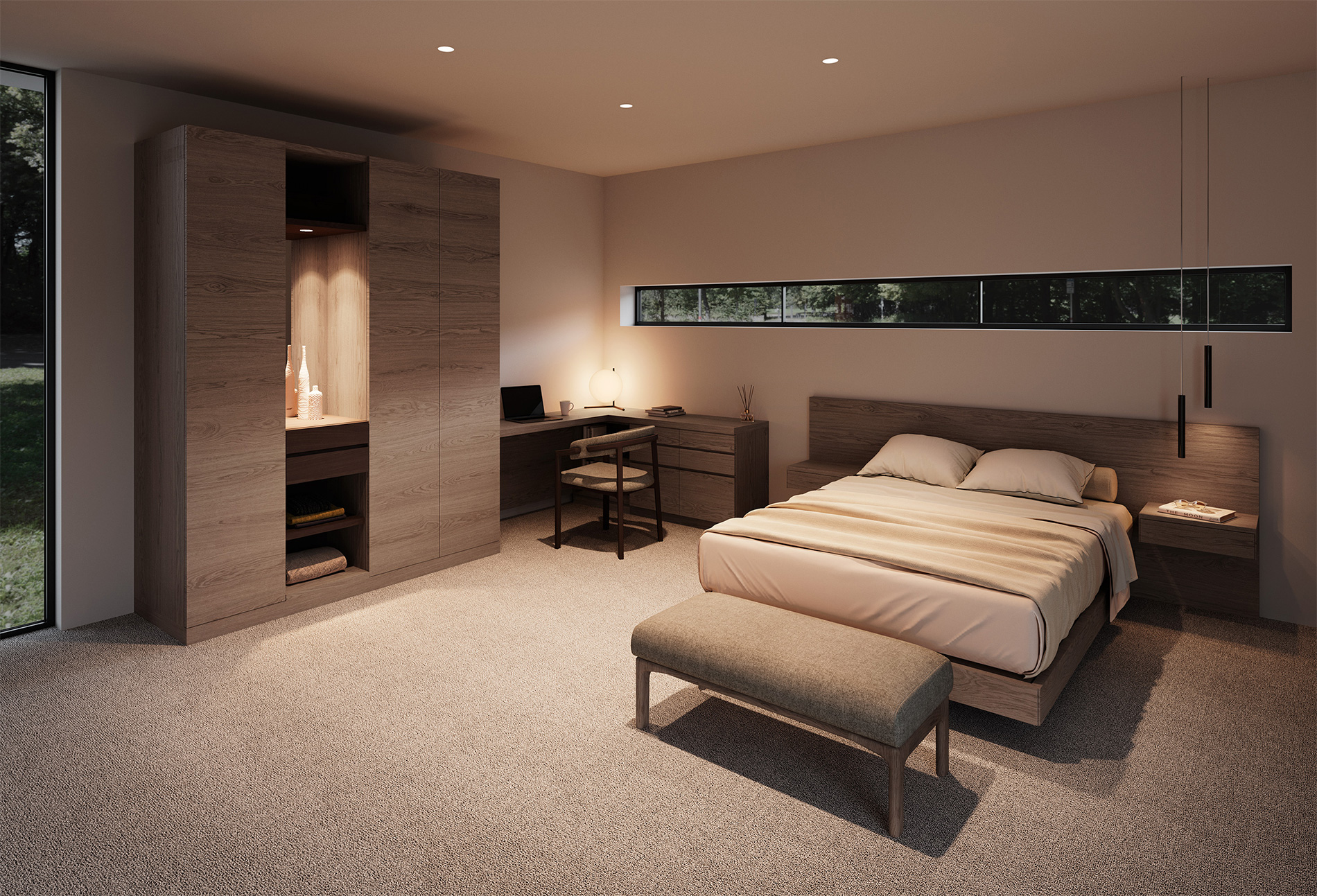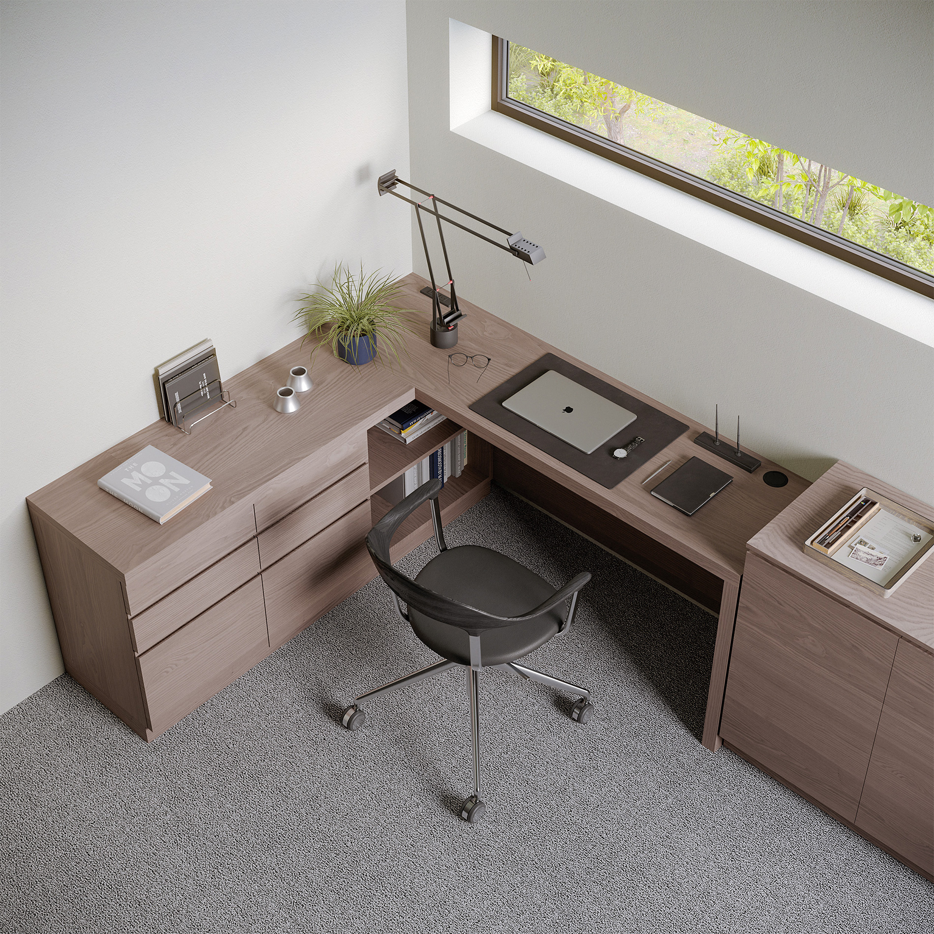ホームオフィスなどにおすすめしたいデスクタイプのプランです。天板にはもの書きにも程よい弾力性を持つ天然素材のリノリウムを採用するなど、快適で安全な作業環境づくりを追求しました。