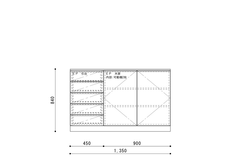 巾1350 × 奥行450 × 高さ840