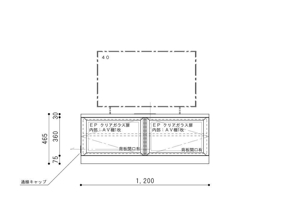 TVボードは、30mmの台輪と15mmの天板で、ミニマルな存在感の組み合わせもご用意。カラー塗装を施した天板と木質感を生かした扉とのコントラストが個性的なプランなど、選択の幅も豊富です。