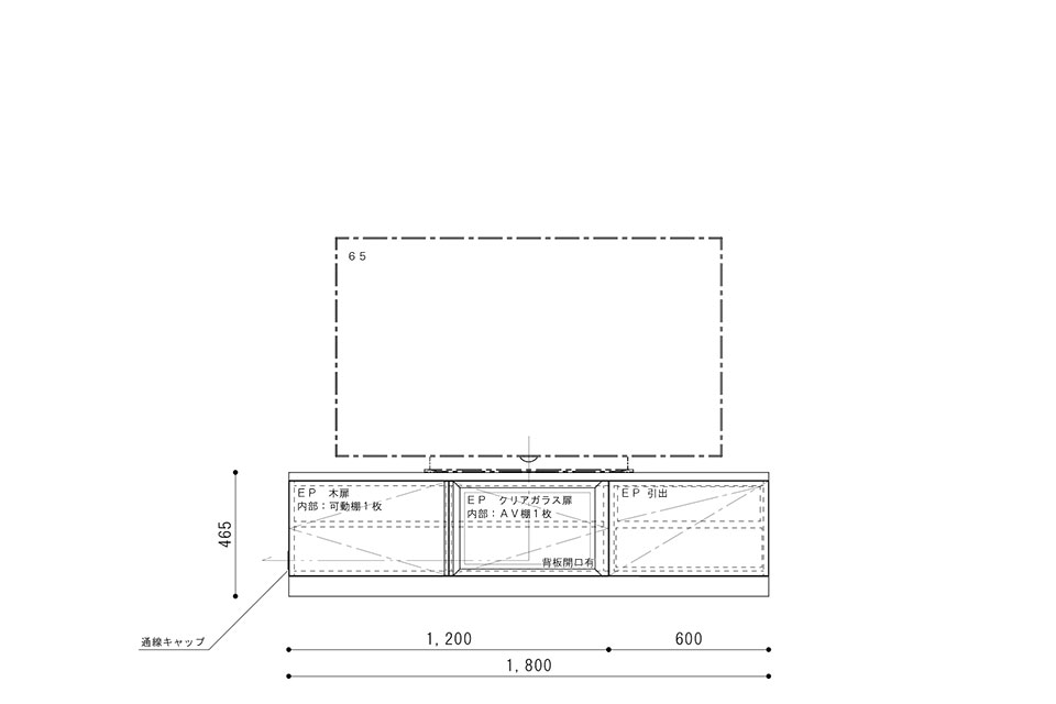 TVボードは、30mmの台輪と15mmの天板で、ミニマルな存在感の組み合わせもご用意。カラー塗装を施した天板と木質感を生かした扉とのコントラストが個性的なプランなど、選択の幅も豊富です。