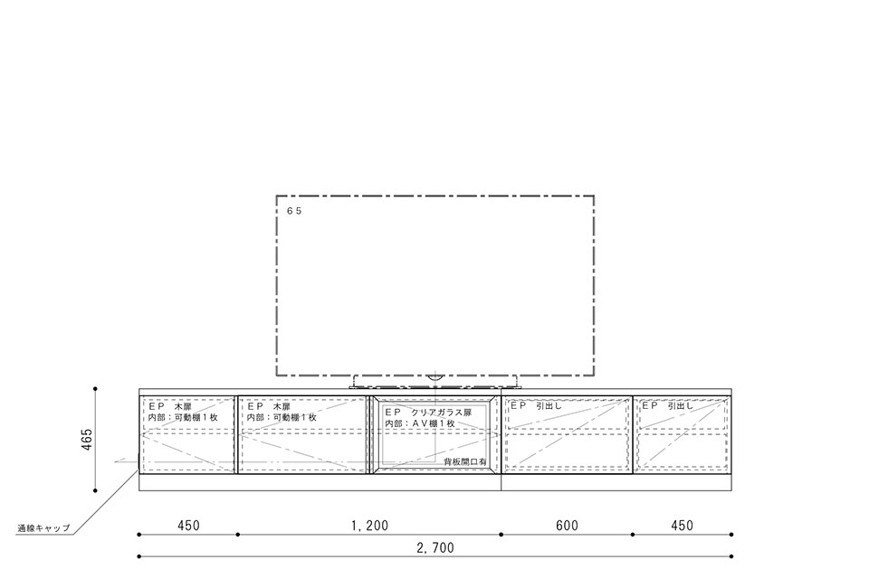 TVボードは、30mmの台輪と15mmの天板で、ミニマルな存在感の組み合わせもご用意。カラー塗装を施した天板と木質感を生かした扉とのコントラストが個性的なプランなど、選択の幅も豊富です。