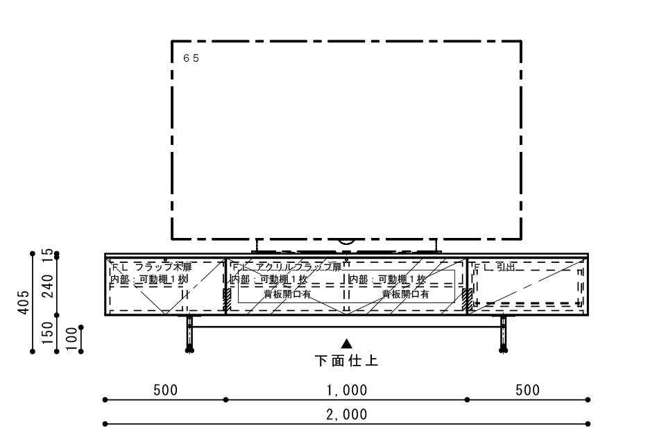 TVボードは、30mmの台輪と15mmの天板で、ミニマルな存在感の組み合わせもご用意。カラー塗装を施した天板と木質感を生かした扉とのコントラストが個性的なプランなど、選択の幅も豊富です。