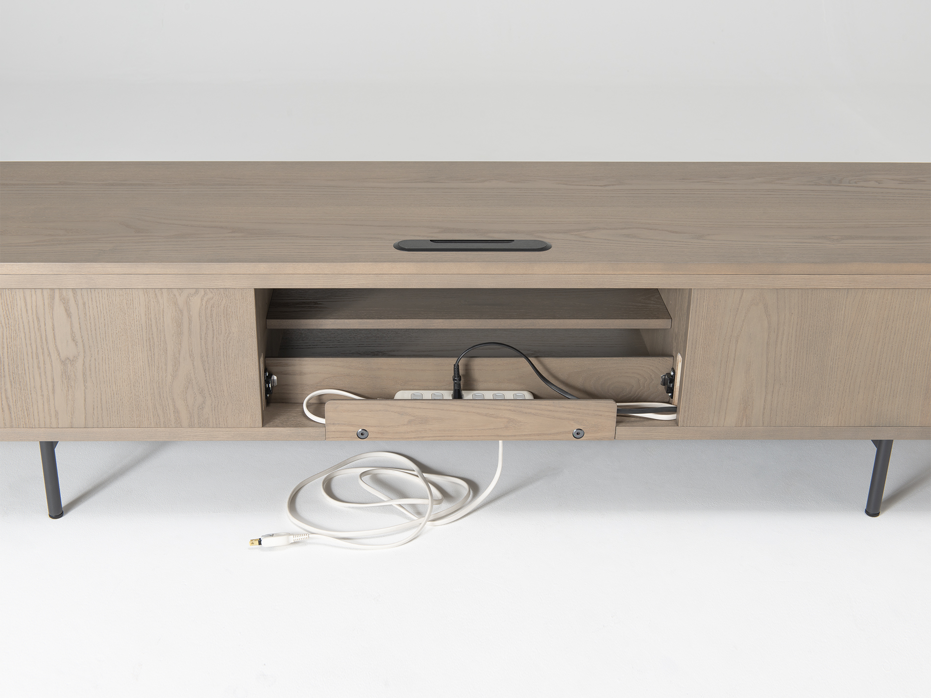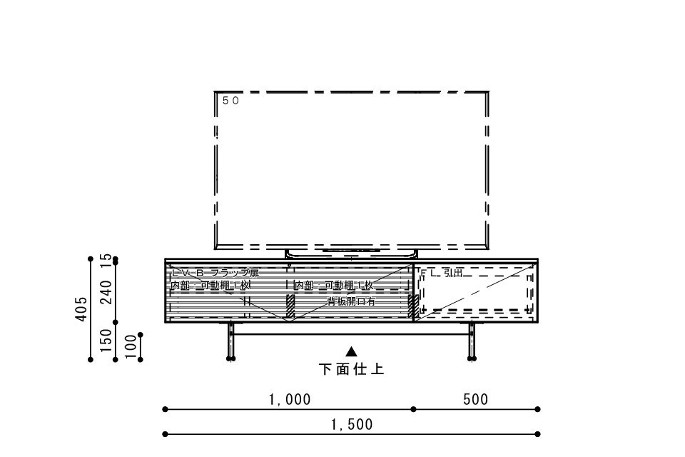 TVボードは、30mmの台輪と15mmの天板で、ミニマルな存在感の組み合わせもご用意。カラー塗装を施した天板と木質感を生かした扉とのコントラストが個性的なプランなど、選択の幅も豊富です。